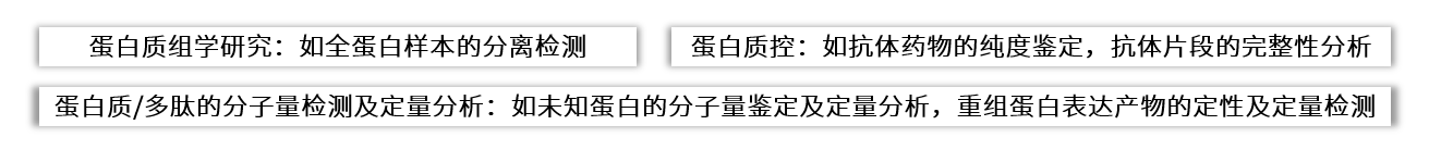 • 用于蛋白质分子量检测及定量分析,蛋白质组分检测,蛋白质纯度检测,Western Blotting 样本验证/转膜效率评估,质谱前蛋白质控,蛋白质完整性分析,重组蛋白表达分析,蛋白抗体药物质控等多种实验