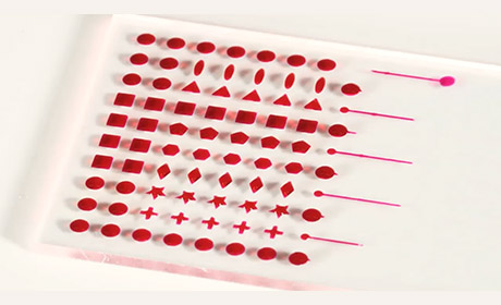近日,一项新型微量液体点印技术引发关注 ——Pavel Levkin 教授及其团队研发了一种特殊显微镜载玻片。通过德国M2 automation公司的皮升/纳升级生物芯片仪在这种载玻片上点样,能让纳升级液滴自动呈现三角形、十字形、矩形、星形等多种非圆形形态,无需复杂设备,仅靠表面“设计”就能实现精准操控。